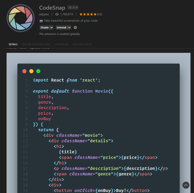Com essa extensĂŁo, vocĂȘ tira AS MELHORES FOTOS DO SEU CĂDIGO, Ă© perfeita pra compartilhar em qualquer lugar! atĂ© mesmo no Instagram para se gabar do seu cĂłdigo limpo! kkkkkkkk
