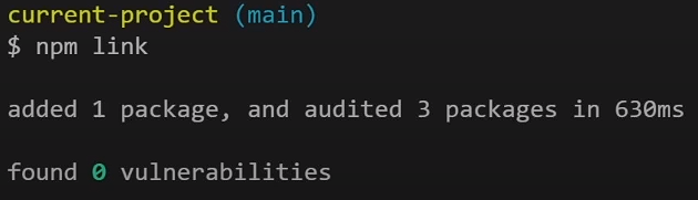 Depois, rode o comando npm link, que irá iniciar o seu pacote localmente, deixando-o pronto para testes