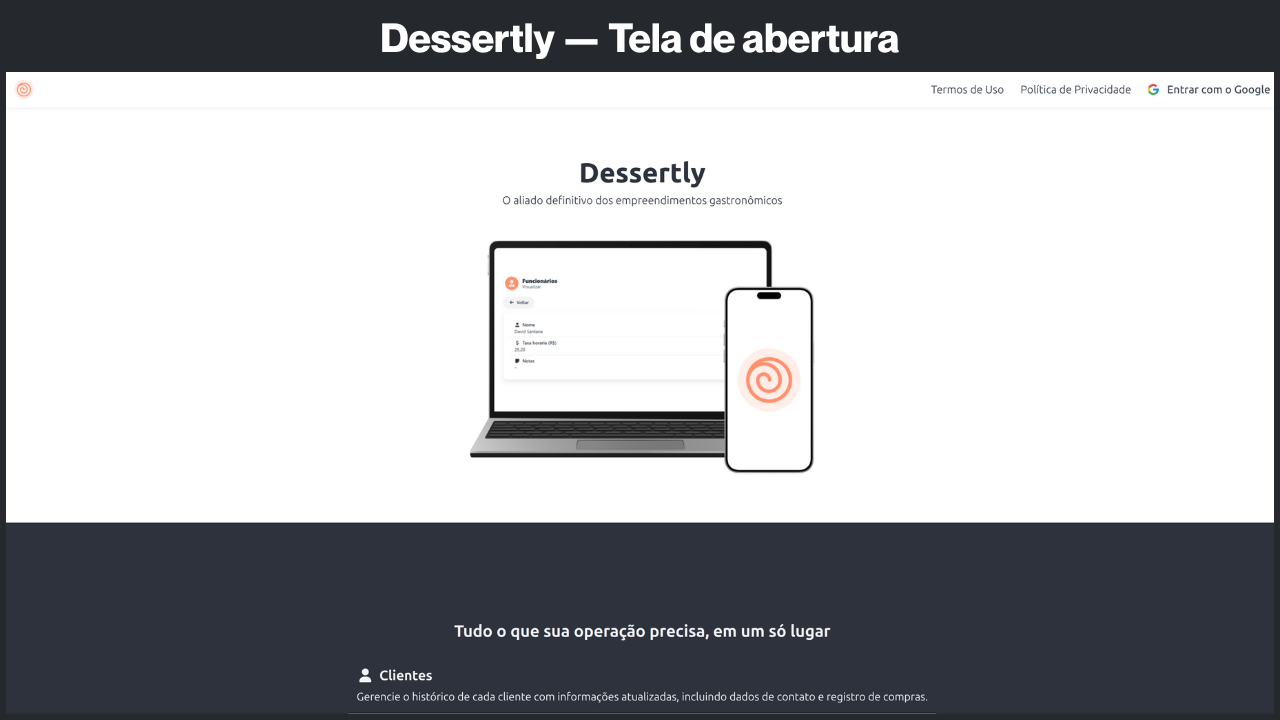Você pode navegar pela versão de demonstração aqui: https://dessertly.onrender.com/.
