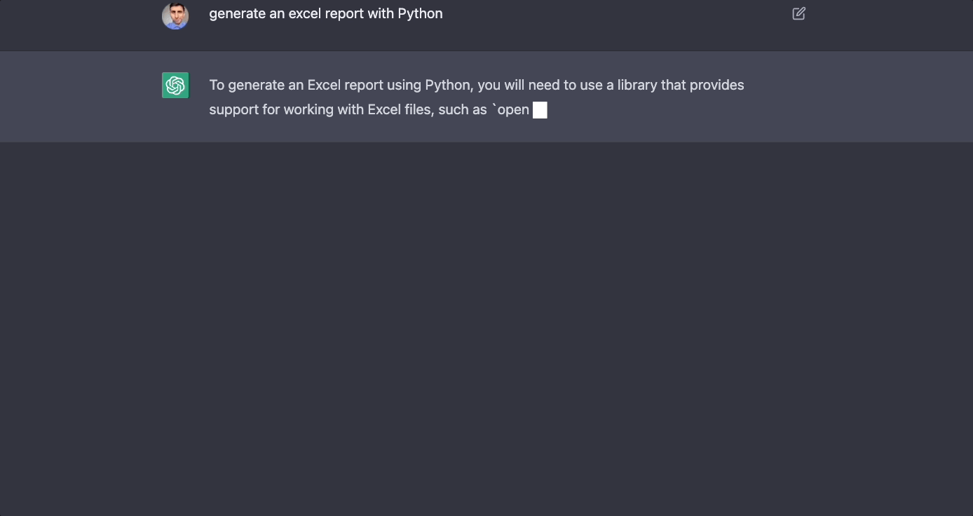 Não consegui ter uma boa ideia para fazer o ChatGPT me ajudar a automatizar relatórios do Excel, então apenas tentei isso.