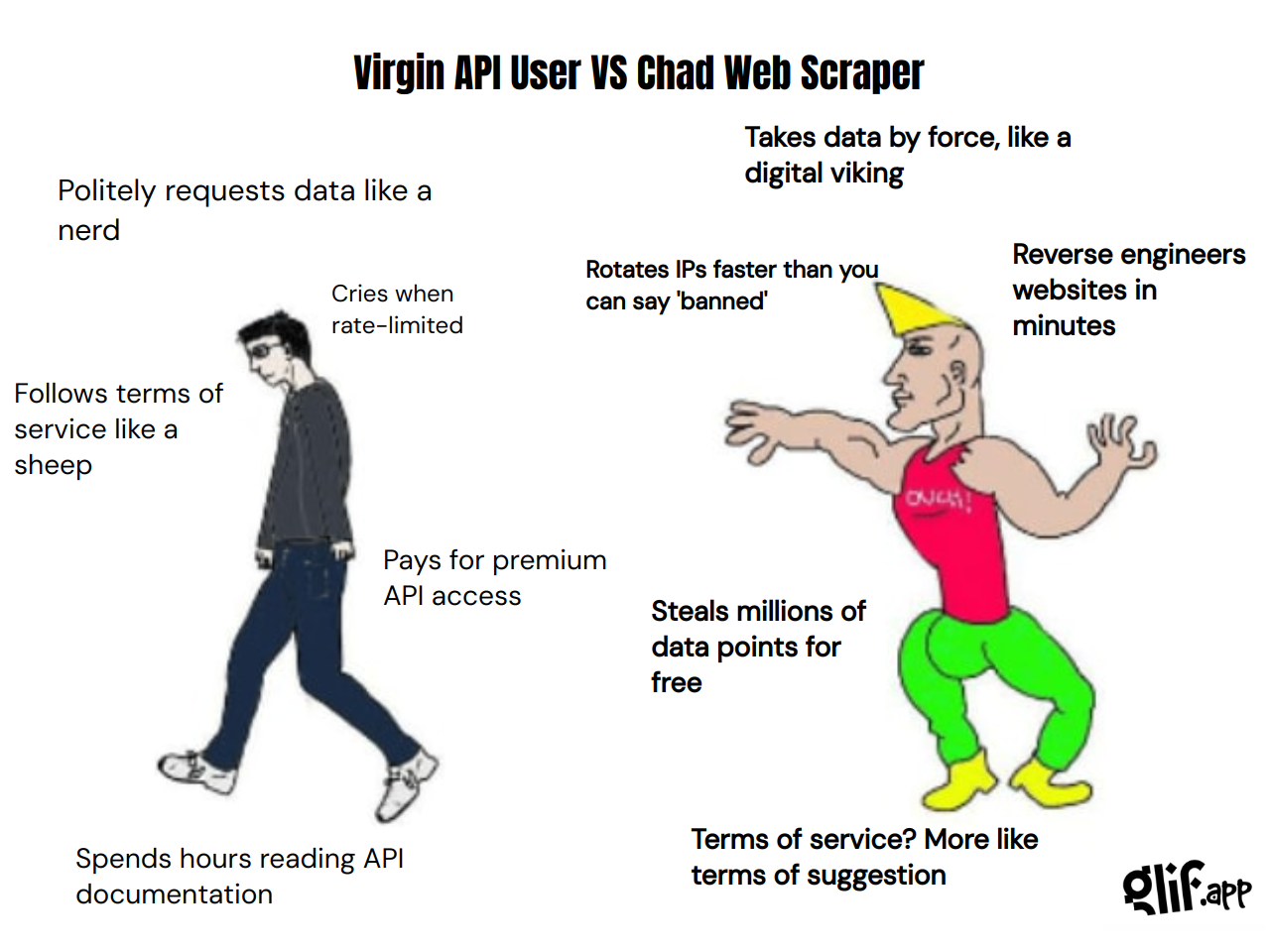 Já outros sites possuem além disso, possuem um rate limit que é um controle de quantas requisições podem ser feitas dentro de uma janela de tempo, ou seja, se você ultrapassar esse limite o servidor não vai te responder com o que você deseja e, em casos piores, irá banir seu IP por um tempo ou para sempre.